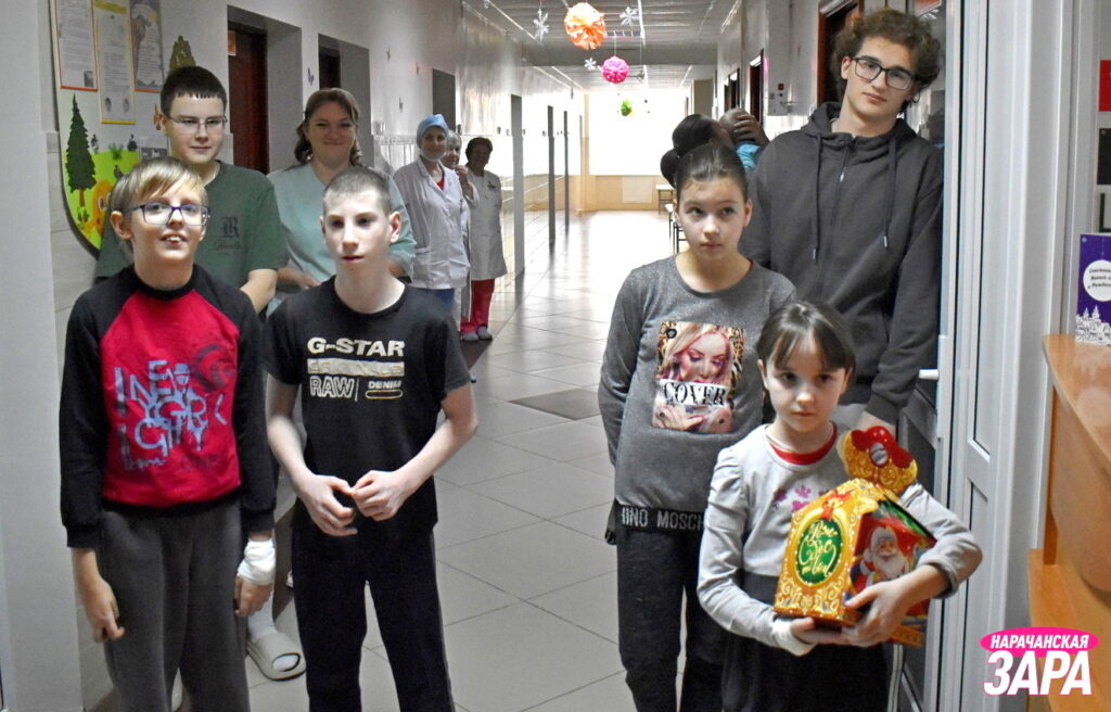 Представители санатория «Приозёрный» в рамках республиканской новогодней благотворительной акции «Наши дети» с подарками приехали 29 декабря в педиатрическое отделение Мядельской ЦРБ.