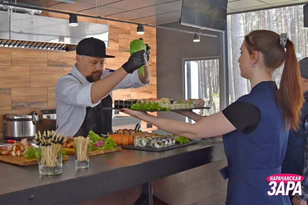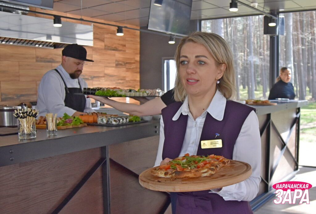 В санатории «Сосны» 30 апреля состоялось торжественное открытие новой гастрономической площадки. Право перерезать красную ленточку доверили шеф-повару санатория Владиславу Лещевичу и заместителю директора по медицинской части Ольге Севастьян.