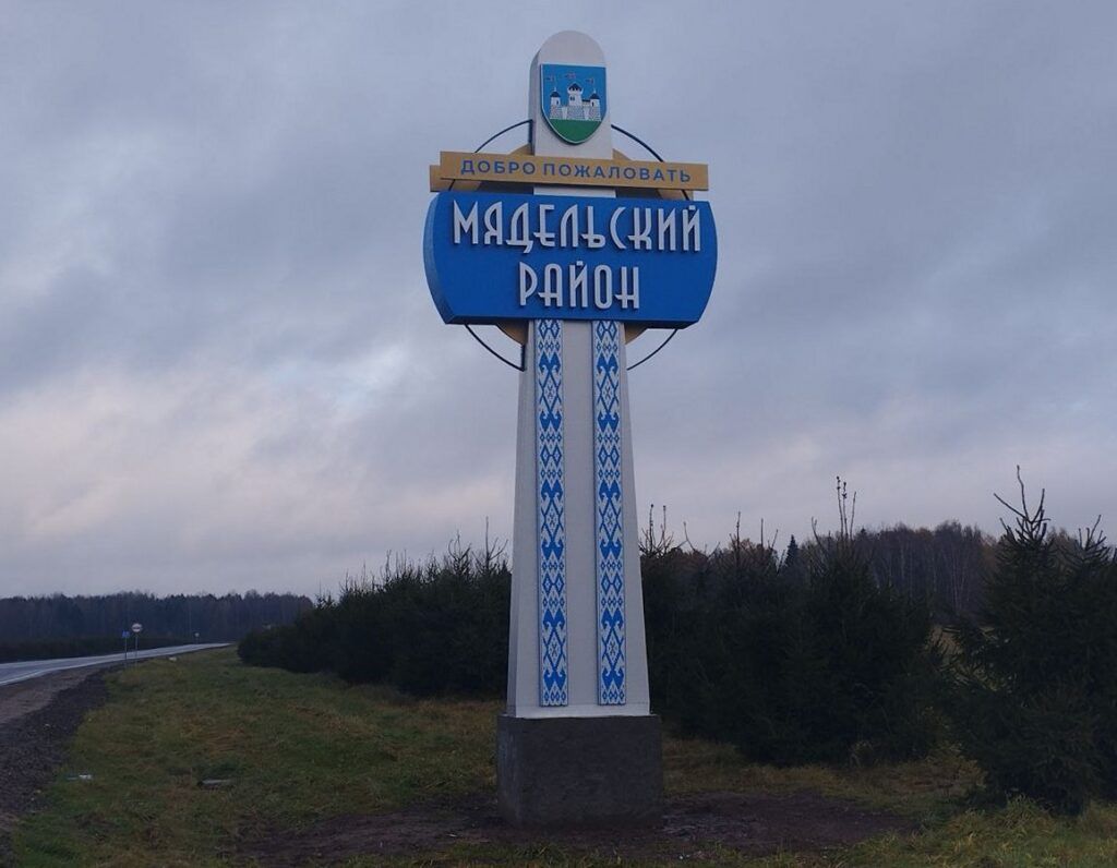 На въезде в Мядельский район со стороны агрогородка Княгинин установлена стела