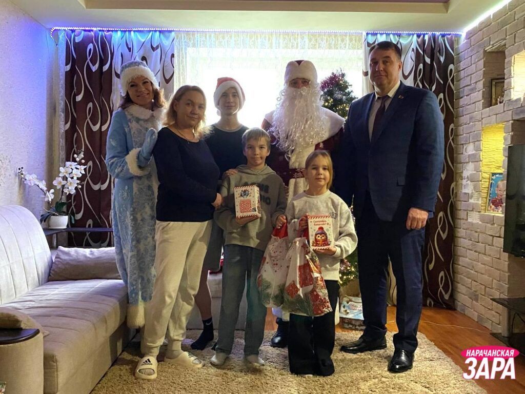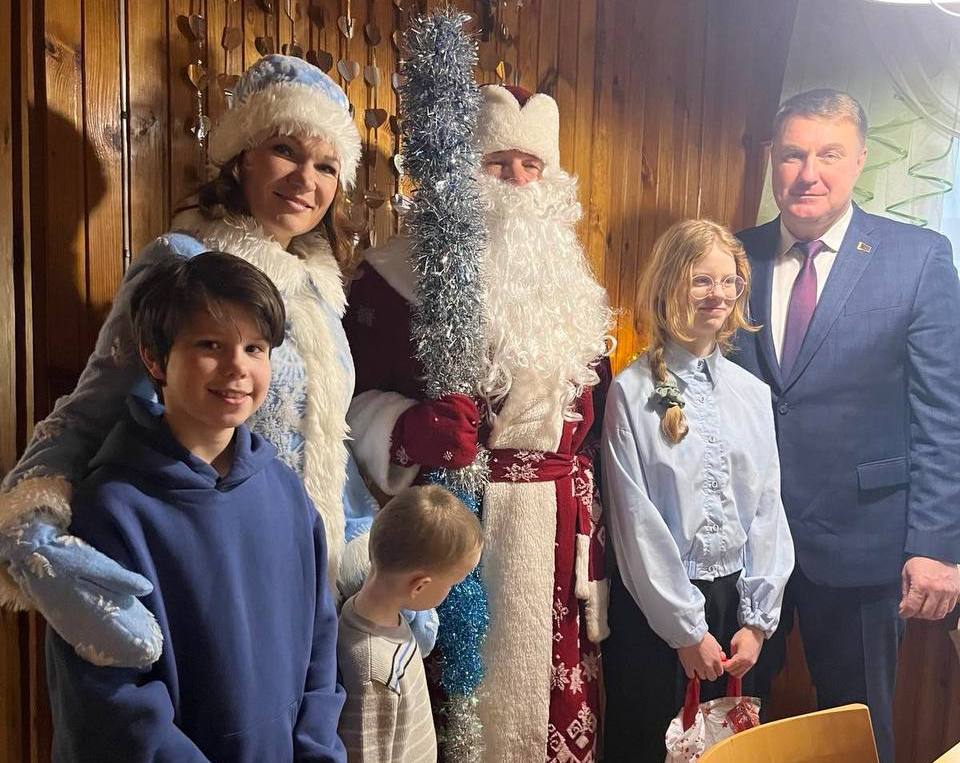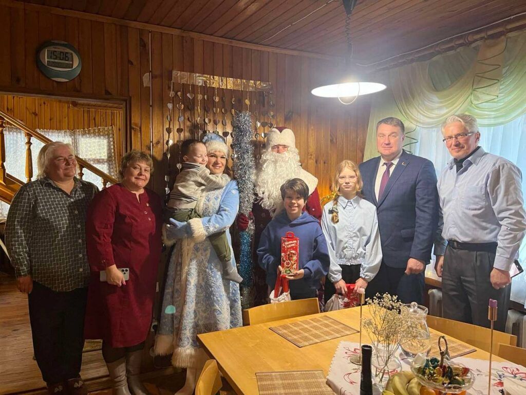 Дед Мороз, Снегурочка, конфеты и подарки. Накануне Нового года председатель райисполкома Александр Пранович побывал в гостях у приемной семьи Марины Новик и у многодетной семьи Сергея и Натальи Пашута.