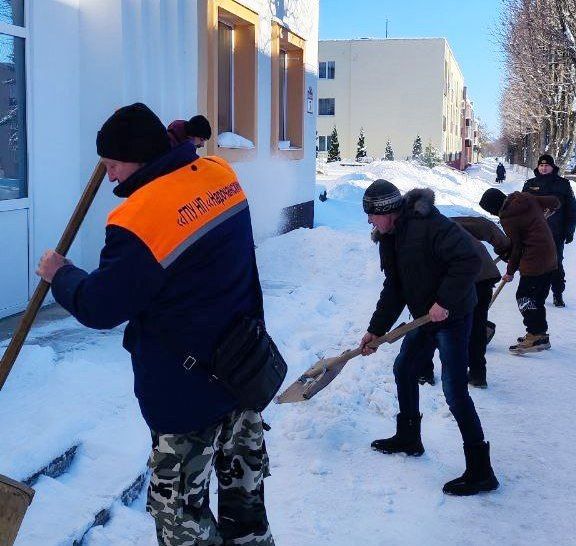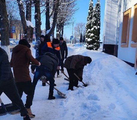 Граждане, состоящие на учётах в отделе внутренних дел Мядельского райисполкома, чистили снег на улицах Мяделя.